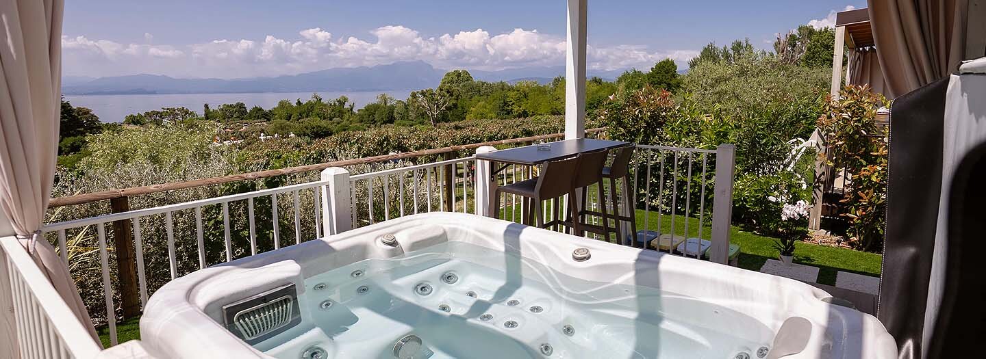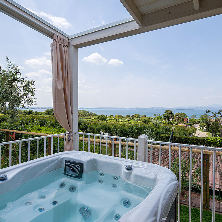 The camping holiday on Lake Garda at a higher level. It is no longer camping, the holiday becomes a moment to get back in touch with nature without giving up comfort and services, such as the large private whirlpool tub. Nature presents itself with its colors and scents. It offers a unique panorama, which is a cure-all for the eyes and for the heart.